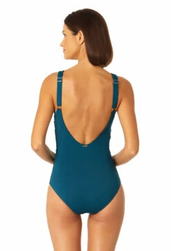 Look vibrant and fresh with our colorblock bandeau bikini top! This bandeau bikini top features blocks of dark teal and rose, and its flattering cut will show off your figure to give you a bold, on-trend look. Adjustable and removable shoulder straps give you two daring looks to choose from. Add a splash of eye-catching color to your next beach day with this bandeau bikini top! Complete your look with any Anne Cole high waisted bikini bottom.