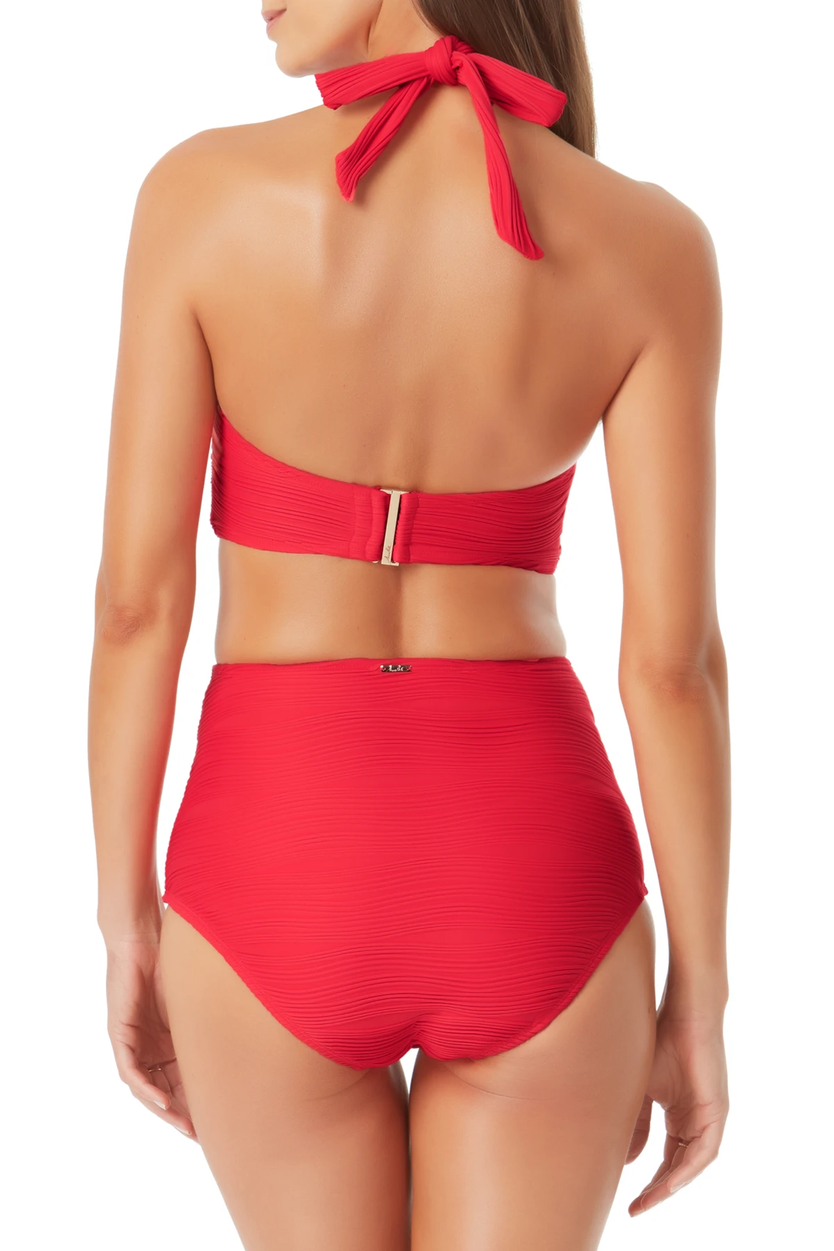 Look eye-catching on your next beach day in this textured bandeau bikini top with halter straps. Our vibrant red bandeau has a textured detail, along with adjustable and removable halter straps to give you multiple ways to wear this trendy swim top. Removable cups give this top comfortable and secure support for all your water activities. For a complete beach day look, wear this bandeau bikini top with our Textured High Waisted Belted Bottom.