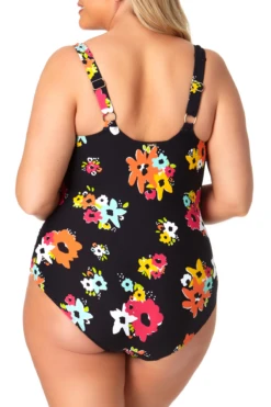 Our Plus Size High Neck With Ruffled Straps One Piece Swimsuit is part of the Whirlpool Ditsy collection, which features a bright, floral pattern. This swim top features a high neck cut, ruffled back straps, and removable cups for the ultimate comfort and style for your look. Pair this with our Button Down Shirt Swimsuit Cover Up for a breezy beach day look!