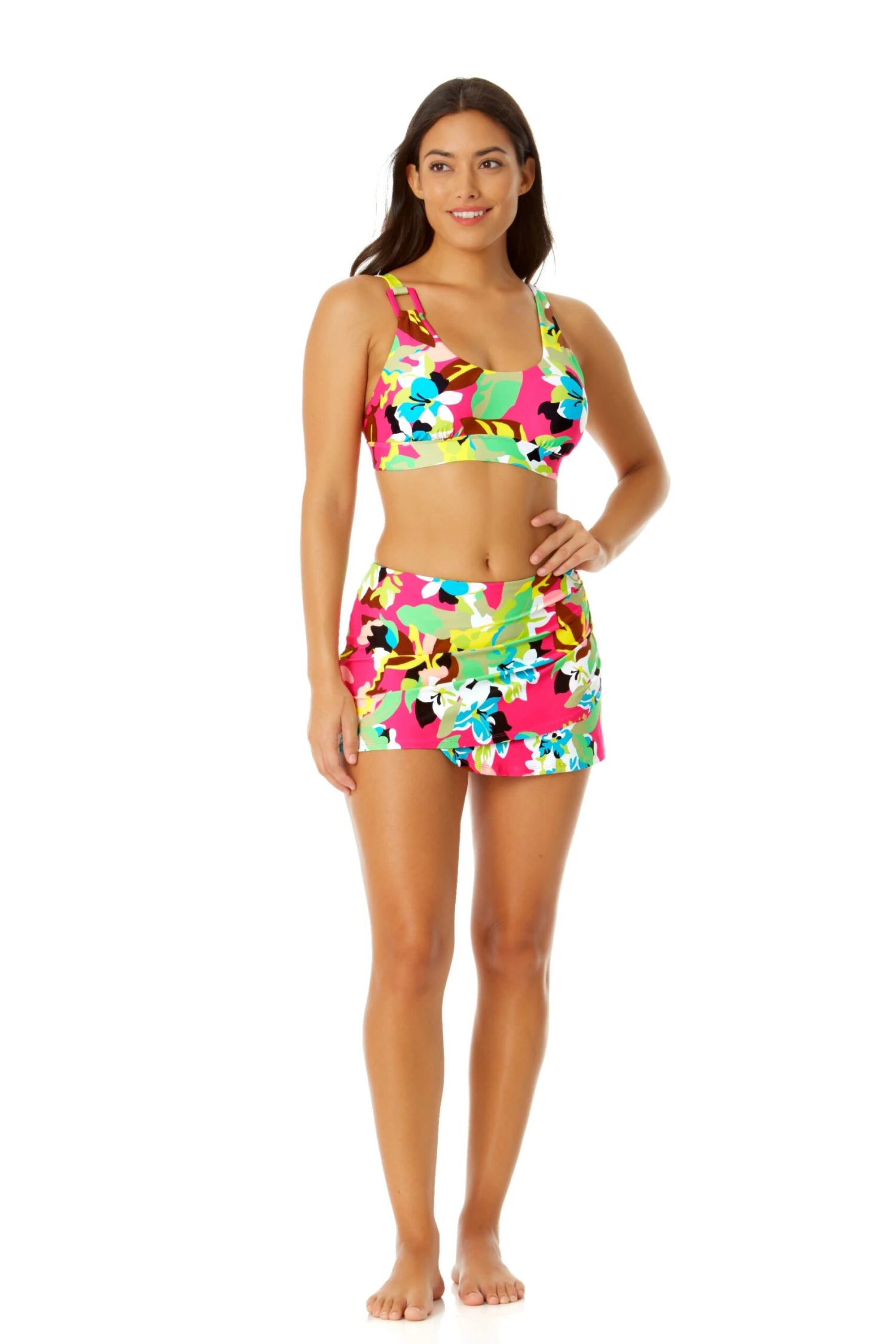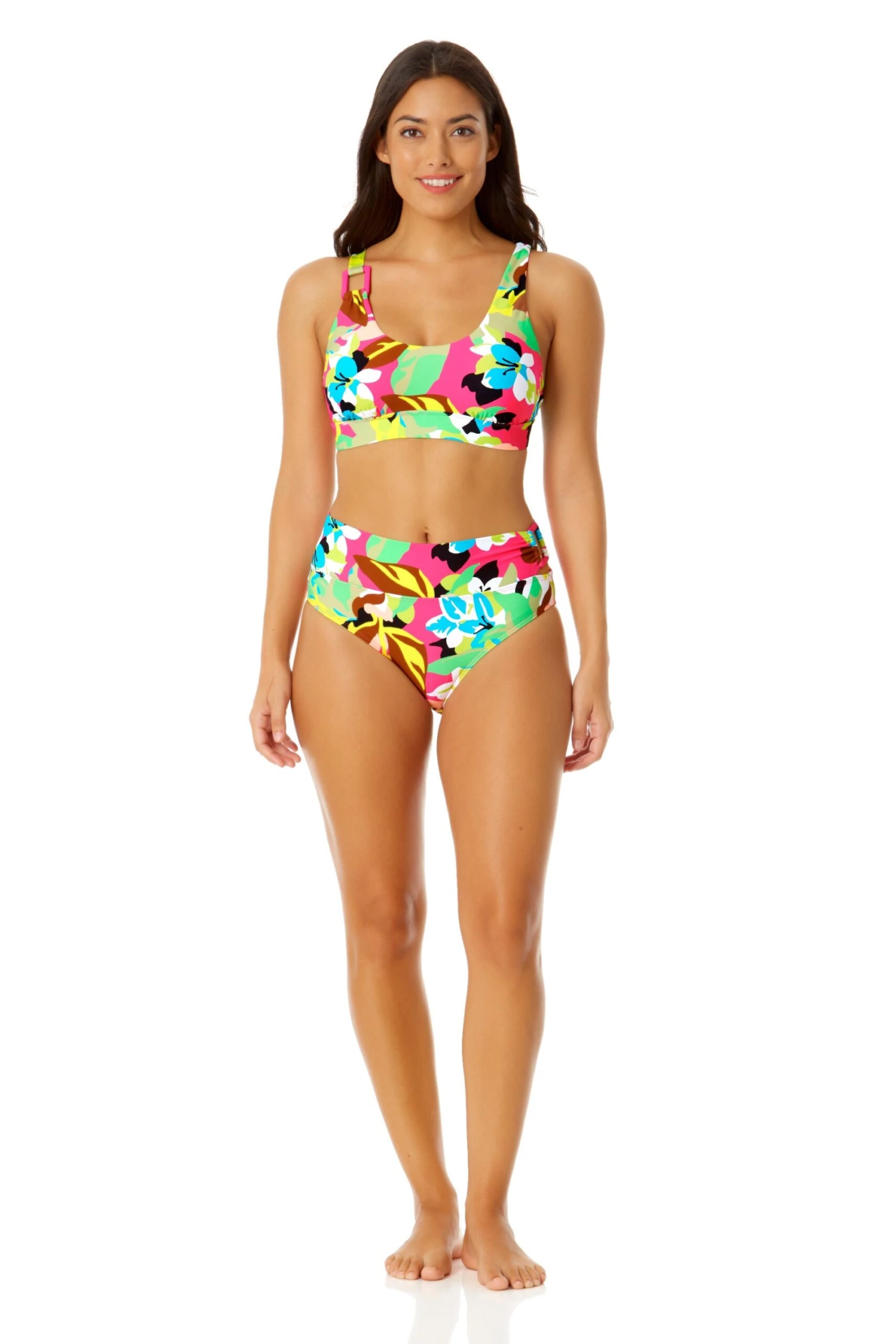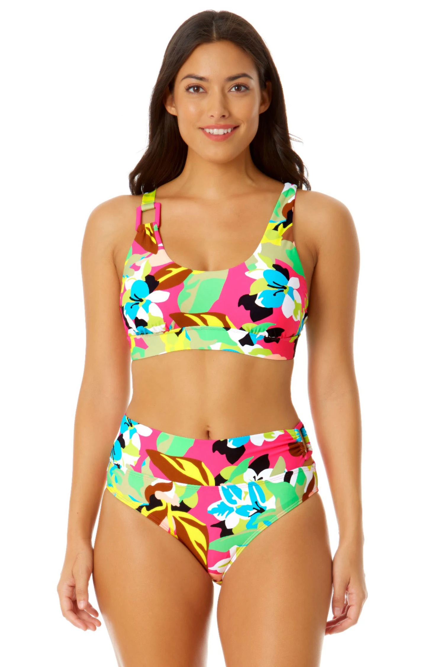 This Asymmetric Ring Bralette Bikini Top’s feminine bralette cut will flatter your neckline and show off your figure, while its asymmetric ring detail adds a stylish touch to your beach day look. Adjustable straps and removable cups will provide you with comfortable support for your water activities. This bralette bikini top can be paired with a matching Anne Cole bottom of your choice to create a personal fashion moment. Grab your favorite shades and enjoy lounging at beach!