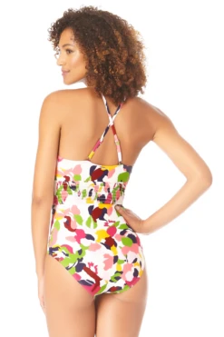 Anne Cole – Flutter Sleeve Zip Up Rash Guard One Piece Swimsuit