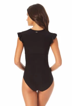 Anne Cole – Flutter Sleeve Zip Up Rash Guard One Piece Swimsuit