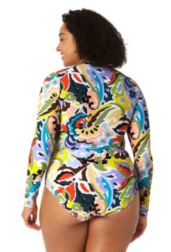 Anne Cole Plus – Women’s Flutter Sleeve Zip Up Rash Guard One Piece Swimsuit